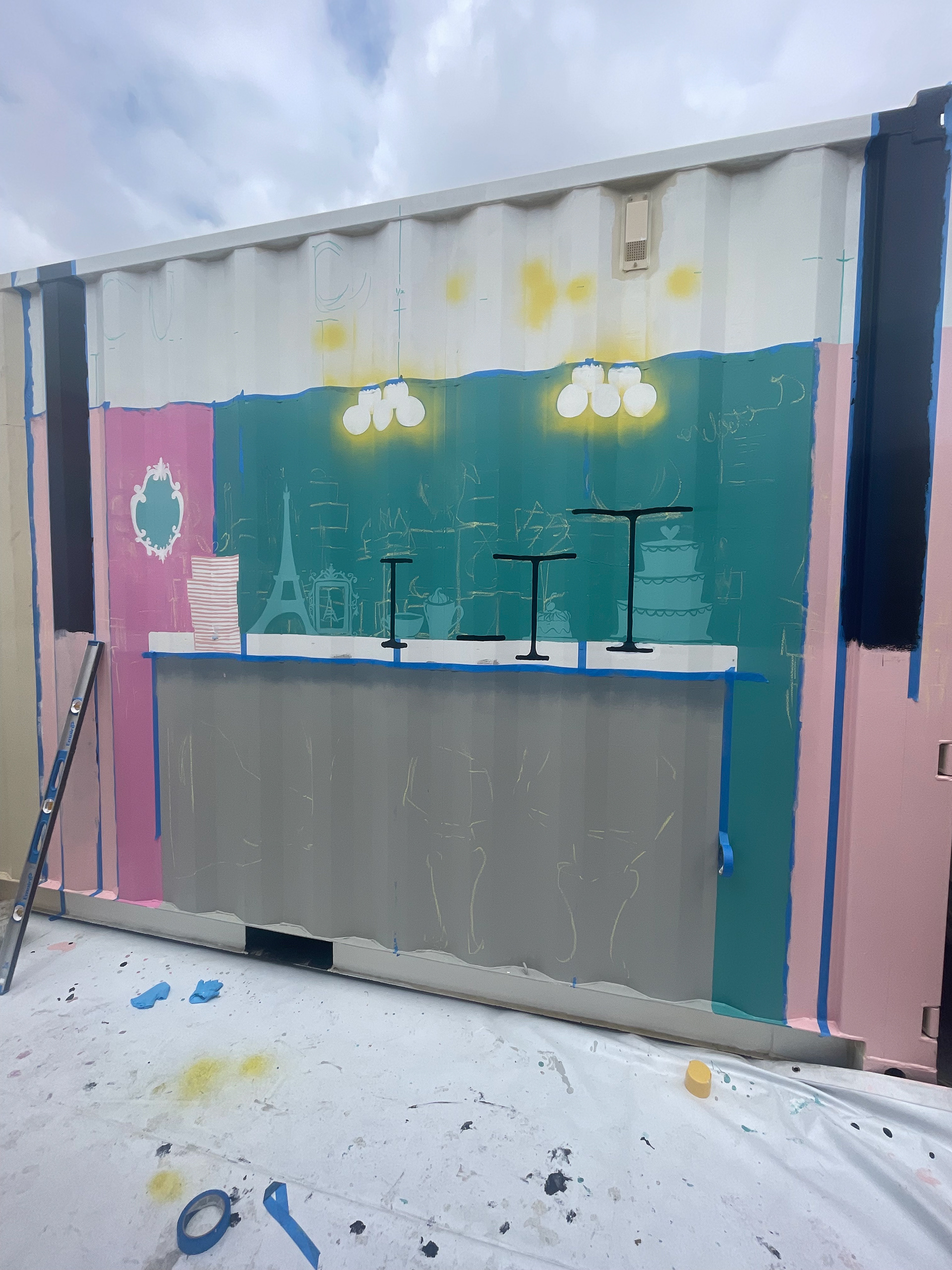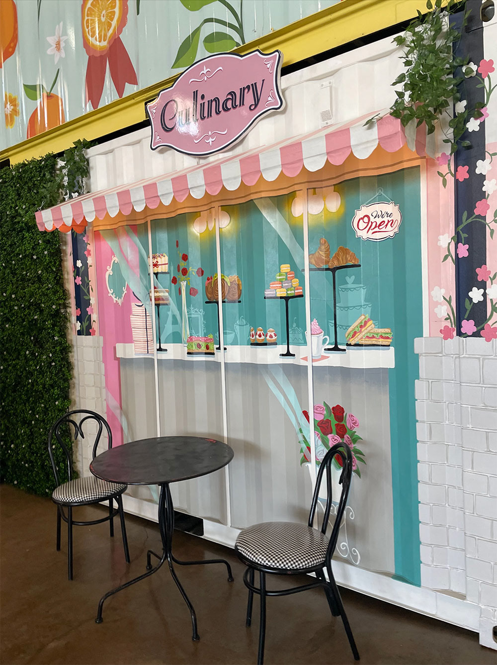 Culinary Mural for Orange County Fair Promenade. Costa Mesa, CA. 10 feet by 10 feet. Paint on metal shipping container. 2024.