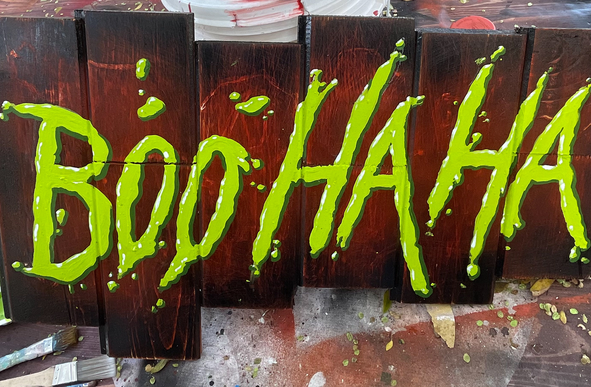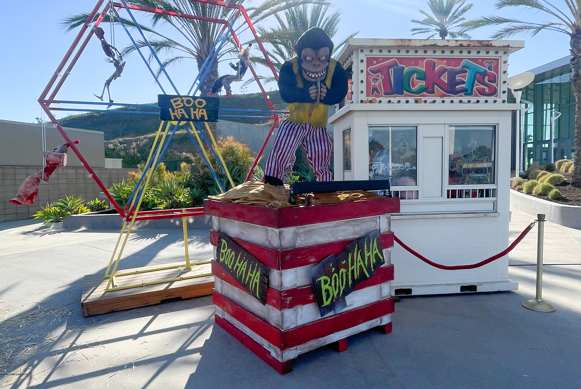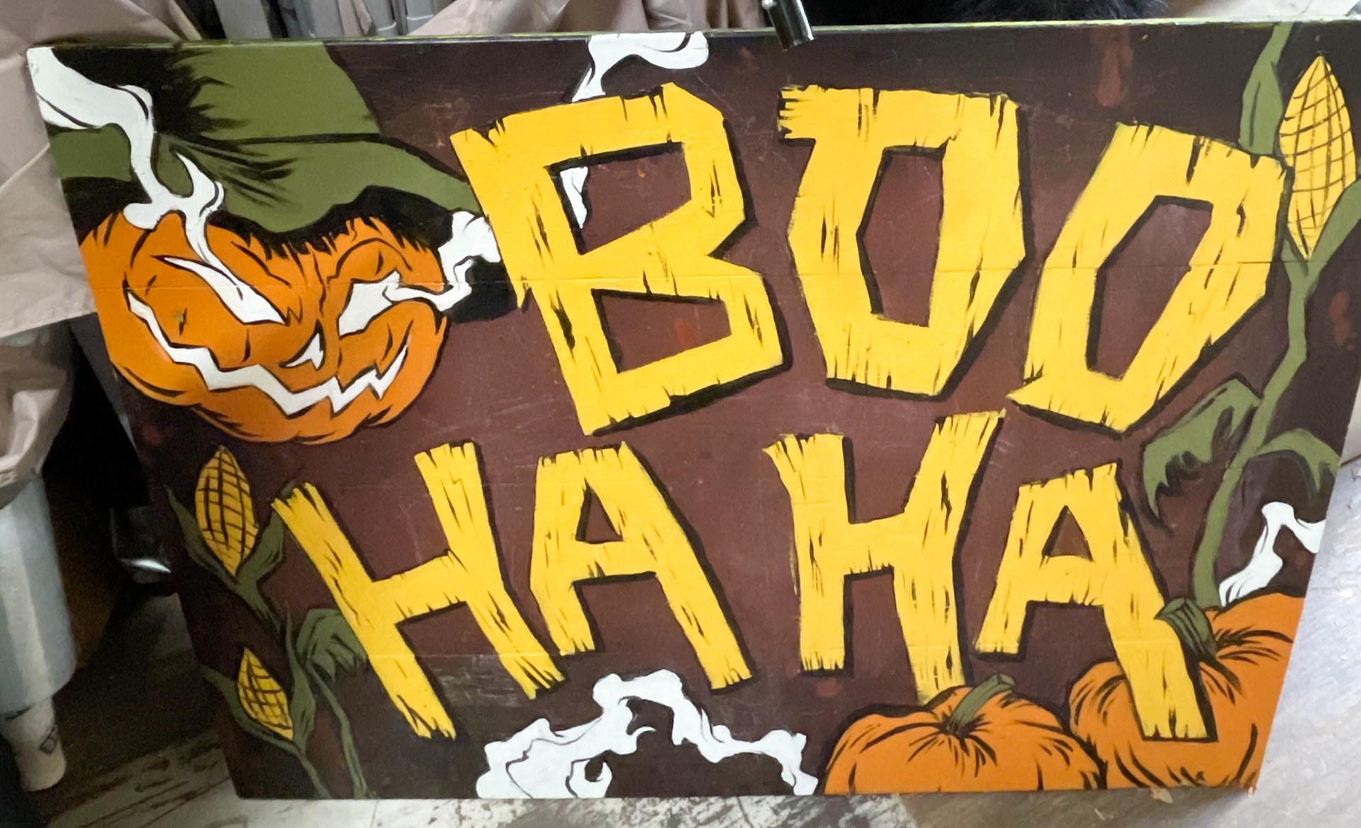 Boo Ha Ha painted signs and decor for Orange County Fair, Costa Mesa, CA. Paint on wood signs and props. 2024