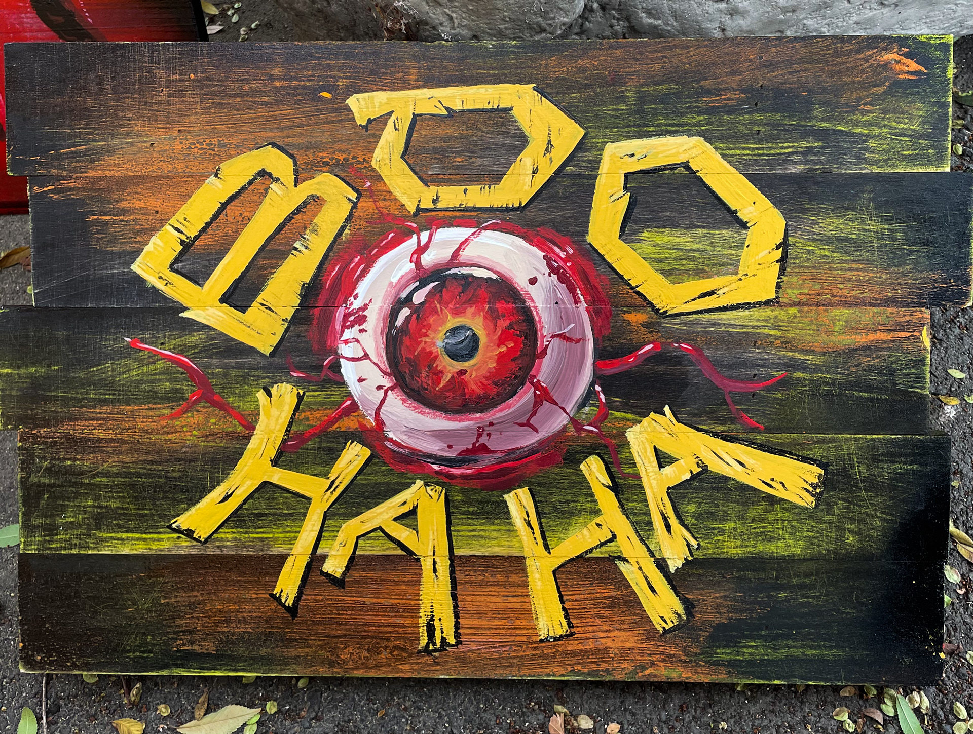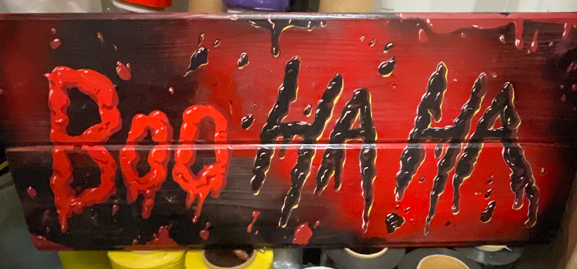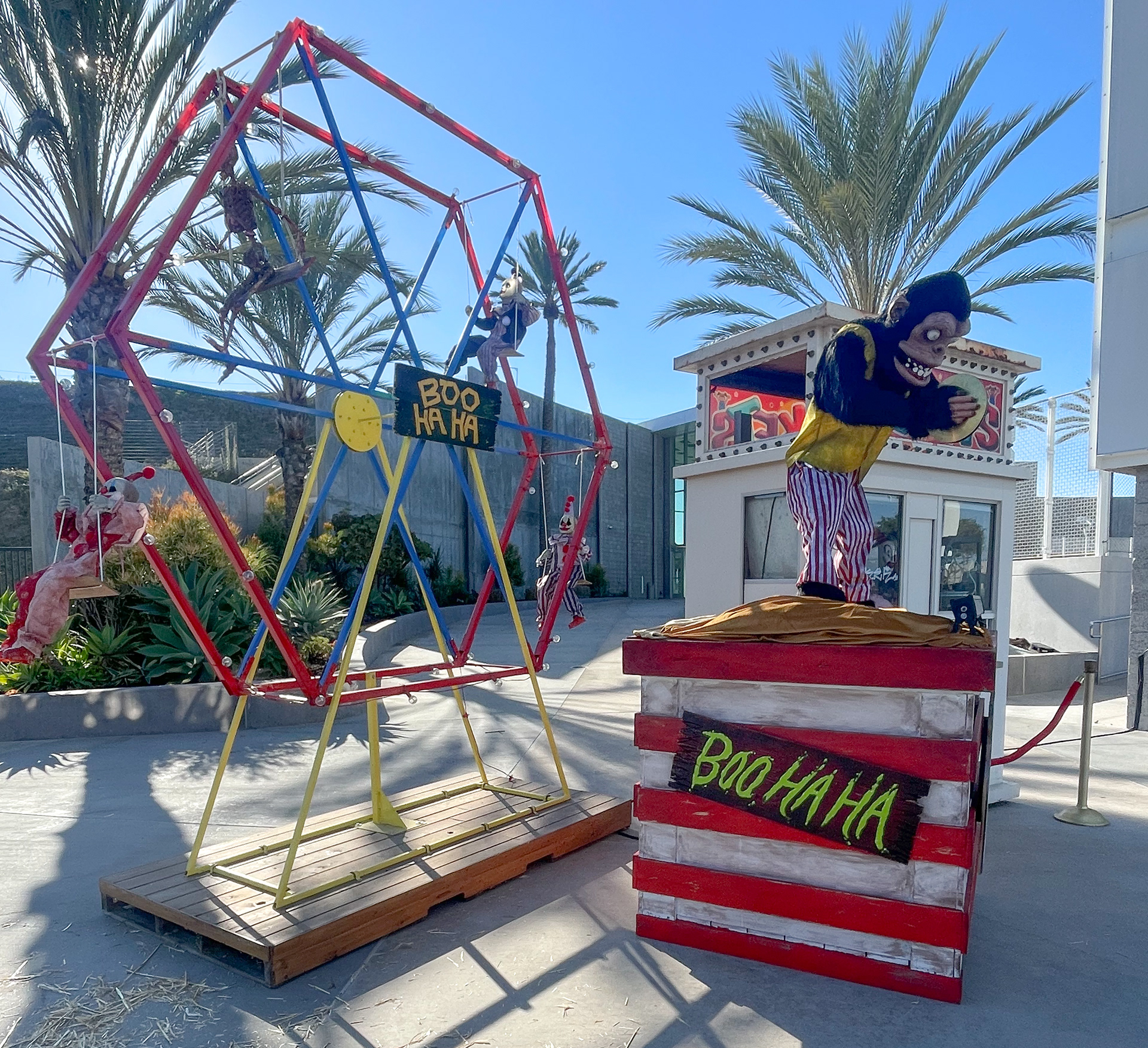 Boo Ha Ha painted signs and decor for Orange County Fair, Costa Mesa, CA. Paint on wood signs and props. 2024