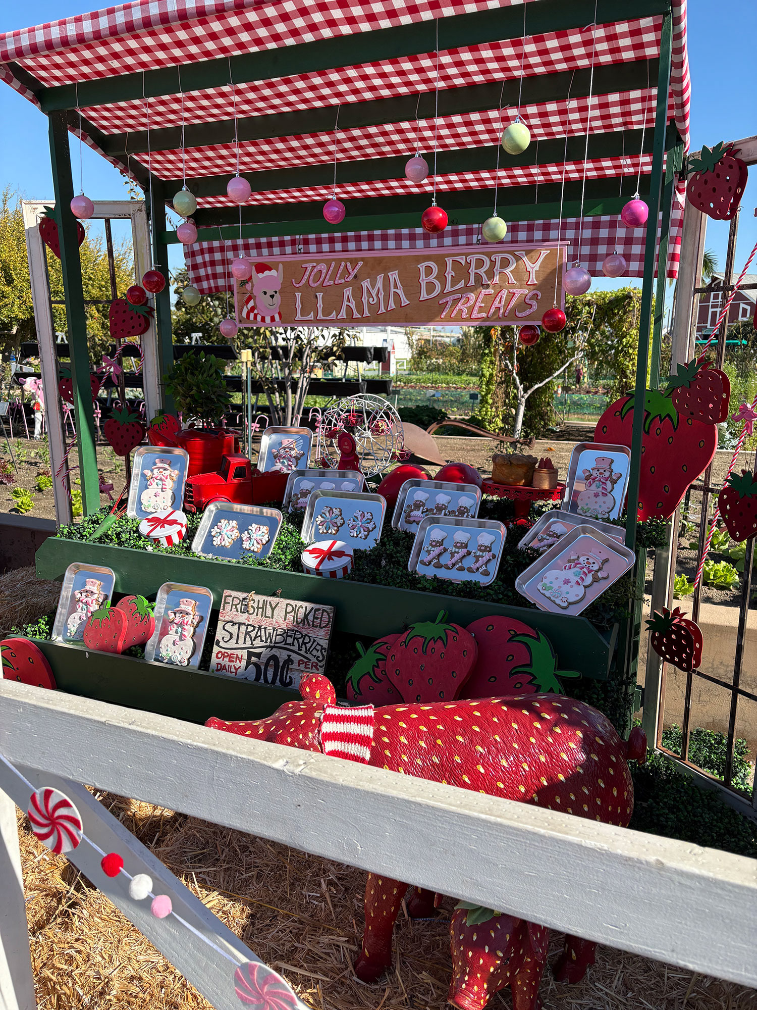 Jolly Llama Berry Treats sign for Orange County Fair, Costa Mesa, CA. 4 feet by 1 feet. Paint on wood sign. 2025.